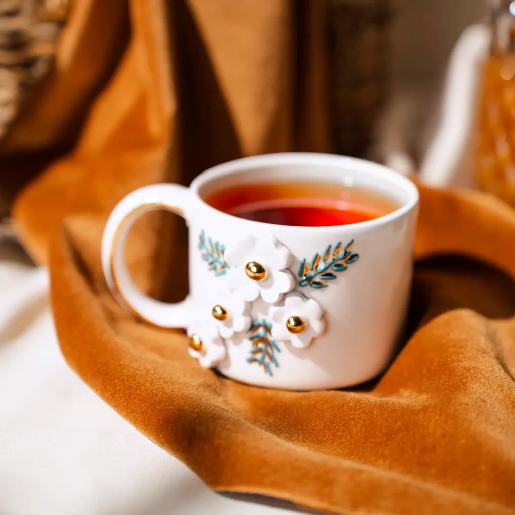 - El Yapımı Çiçekli Seramik Fincan