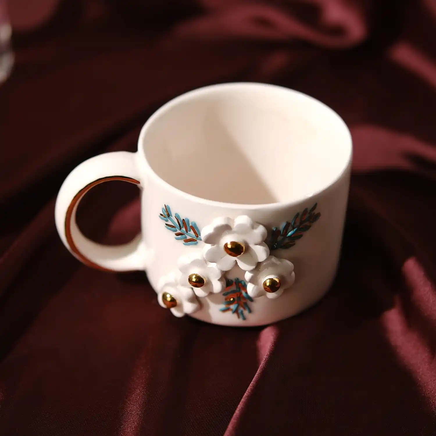 - El Yapımı Çiçekli Seramik Fincan